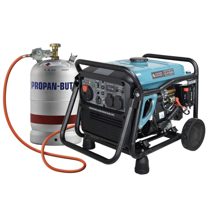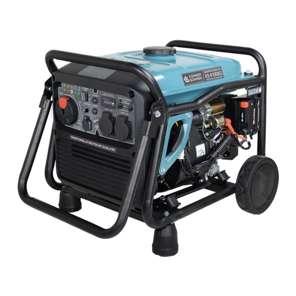 Генератор KS 4100iE G німецької ТМ «Könner & Söhnen» — це зручне джерело електроенергії. Вбудований електронний блок з мікропроцесорним управлінням контролює роботу генератора і забезпечує фіксовану частоту 50 Гц і напругу 230В.