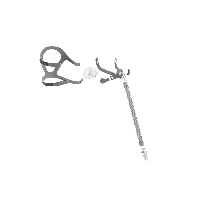 - Модульна рамка: Оправа маски має модульну конструкцію, яка сумісна з різними розмірами подушок і фіксується одним натисканням кнопки. Це робить налаштування маски максимально зручним та простим.