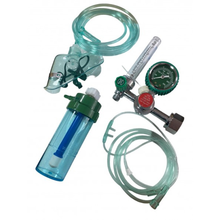 Обладнання складається з: манометра, редуктора, витратоміра (індикатор встановленої витрати літрів в хвилину), регулятора потоку кисню, запобіжного клапана, зволожувача, антибактеріального фільтра, кисневої трубки з маскою для обличчя, заправного перехідника.