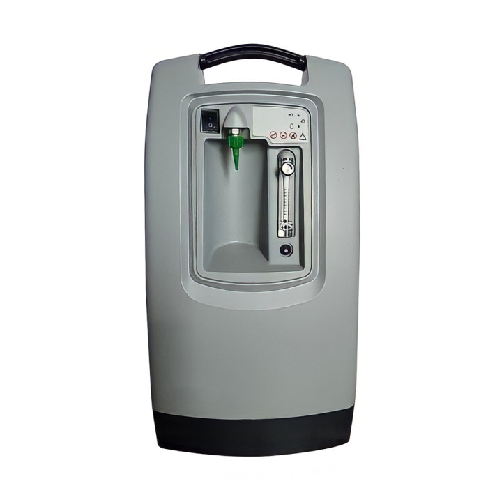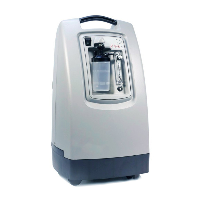 Компресор направляє профільтроване повітря з навколишнього середовища до кругового розподільного клапану, який забезпечує проходження стисненого повітря через працюючу колонку. Колонка містить молекулярне сито, яке поглинає азот і, таким чином, підвищує концентрацію кисню. Збагачений киснем продукт потім прямує до клапана зниження тиску, що проходить через клапан регулювання потоку і підводиться до кисневого патрубку. Протягом цього часу колонка, в якій відбуваються процеси "регенерації", залишається приєднаної до навколишнього повітря, і через неї проходить потік збагаченого киснем продукту (з колонки "в робочому режимі"). Таким чином, коли одна колонка в робочому режимі, друга колонка знаходиться у фазі поглинання азоту або "регенерації". В кінці збагачений киснем продукт проходить через бактеріальний фільтр, розташований перед кисневим патрубком. Далі через зволожувач в канюлю пацієнта.