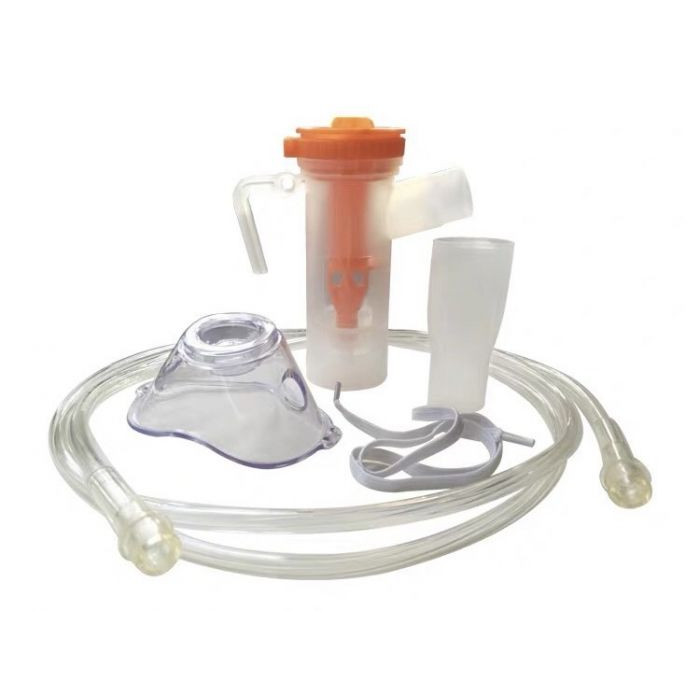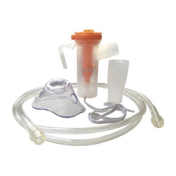 Киснева маска з небулайзером призначена для прийому ліків через кисень. У склянці є ділення для заливки ліки, потім людина включає кисневий концентратор і починає дихати. У комплекті доросла і дитяча маска.