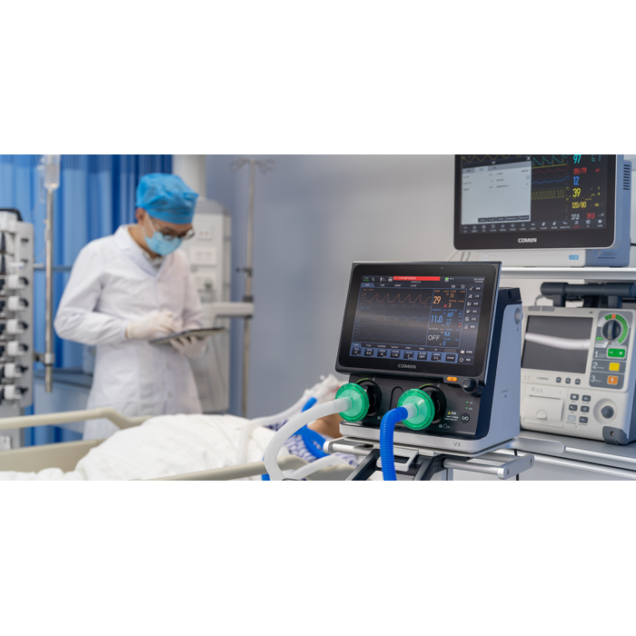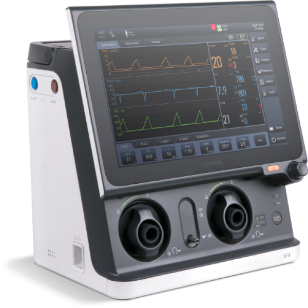 V3 — це турбінна платформа підтримки дихання, яка може впоратися з різними сценаріями, включаючи приліжкову вентиляцію (тривалу / короткочасну) та вентиляцію під час внутрішньо лікарняного транспортування.