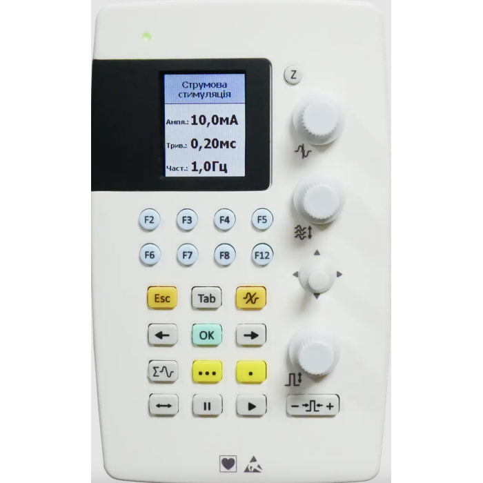 Використовуючи функціональну клавіатуру, ви можете легко управляти обстеженням, не звертаючись до комп’ютера. На панель приладу винесені кнопки збільшення / зменшення амплітуди стимулу, запуску ритмічної стимуляції, подачі одиночного стимулу, вимірювання імпедансу і т. д.