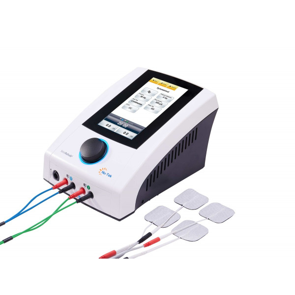 Особливості використання: Процес налаштування та дані сеансу терапії відображаються на 7-дюймовому кольоровому сенсорному екрані. Україномовне інтерфейсне меню на сенсорному екрані та ергономічна панель управління приладом забезпечують простоту зручність і ефективність використання приладу. Оператору доступні режими терапії в ручному режимі (широкий діапазон налаштувань параметрів дозволяє налаштувати сеанс терапії для будь яких клінічних станів пацієнта), параметри ручних режимів можна зберегти в пам’яті приладу в якості користувальницьких програм, для подальшого швидкого початку терапії. 42 терапевтичних клінічних протоколи терапії містять детальний опис проведення процедур терапії та кольорові графічні зображення-підказки щодо накладання електродів. Зручний вимикач кола пацієнта дозволяє пацієнту призупинити сеанс терапії в будь який момент, якщо він відчує дискомфорт під час терапії.