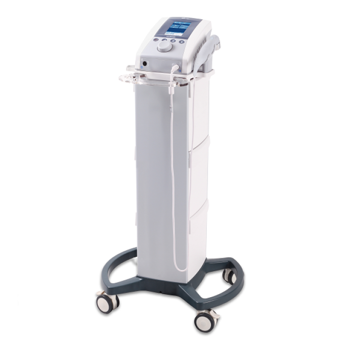 Особливості використання: Процес налаштування та дані сеансу терапії відображаються на 5-дюймовому кольоровому сенсорному екрані. Україномовне інтерфейсне меню на сенсорному екрані та ергономічна панель управління приладом забезпечують простоту, зручність і ефективність використання приладу. Оператору доступні режими терапії в ручному режимі (широкий діапазон налаштувань параметрів дозволяє налаштувати сеанс терапії для будь яких клінічних станів пацієнта), параметри ручних режимів можна зберегти в пам’яті приладу в якості користувальницьких програм, для подальшого швидкого початку терапії. 25 вбудованих терапевтичних клінічних протоколів терапії містять детальний опис проведення процедур терапії та кольорові графічні зображення розташування випромінювача ультразвуку.