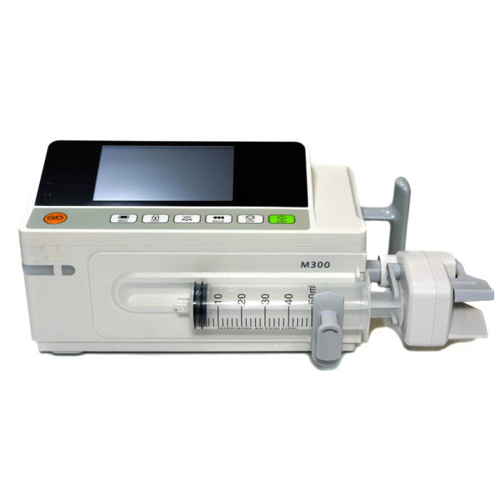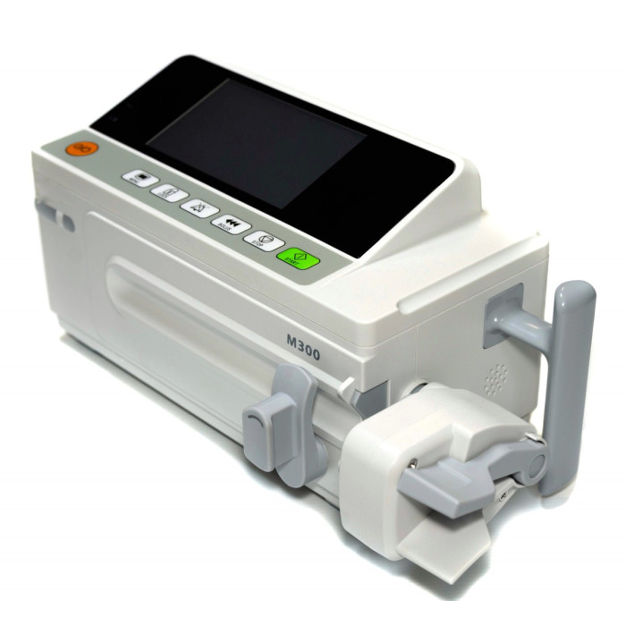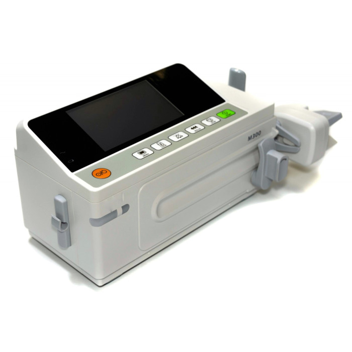 - Екран: шприцевий насос M300 оснащений 4,3-дюймовим кольоровим, сенсорним дисплеєм, кут нахилу екрану 20 градусів забезпечує зручність налаштувань та комфортну візуалізацію процесу інфузії.