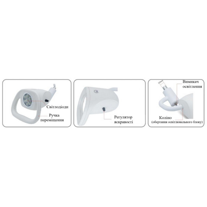 - Регулювання яскравості: Світильник оснащений функцією регулювання яскравості світла. Це дозволяє медичному персоналу налаштувати світильник залежно від конкретної процедури та потреб.