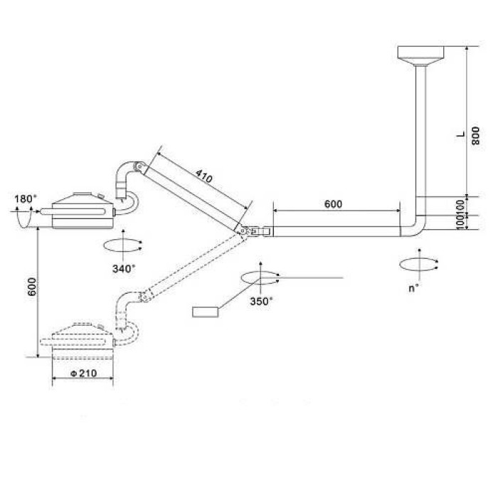 Діапазон зміни висоти при нахилі освітлювального блоку з балансувальним пристроєм вгору/вниз | 600 мм |
