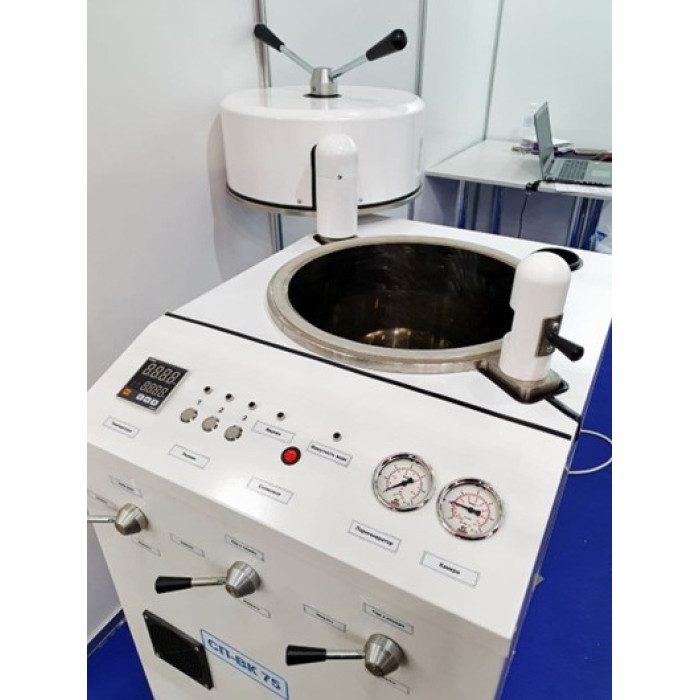 - Керування процесами стерилізації, манометр, мановакуумметр, терморегулятор розміщені на передній панелі автоклава