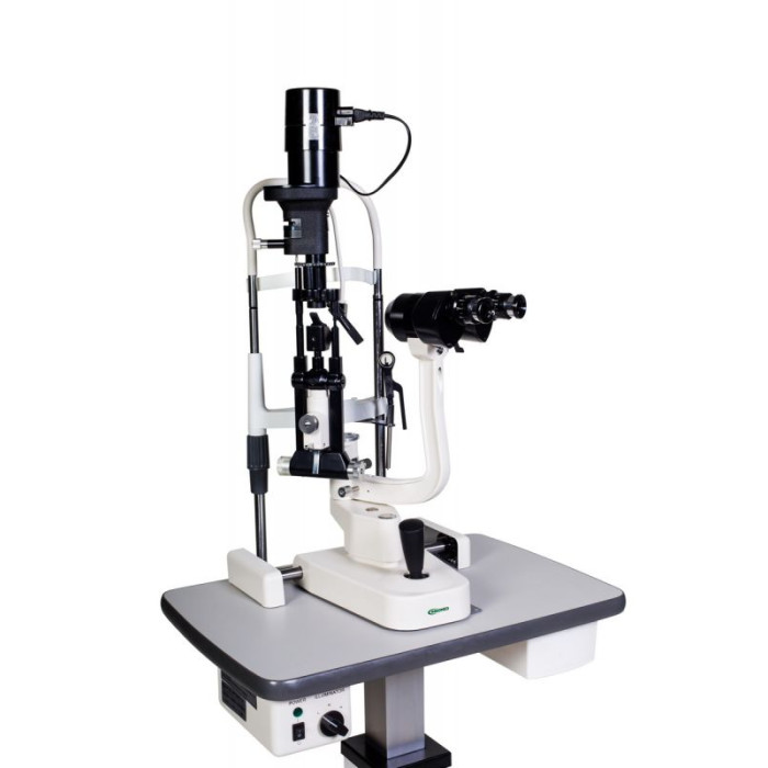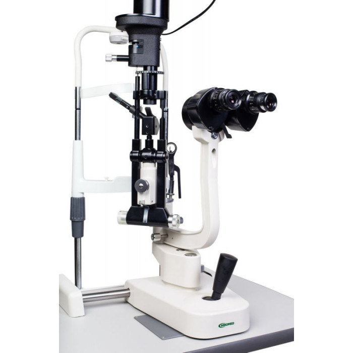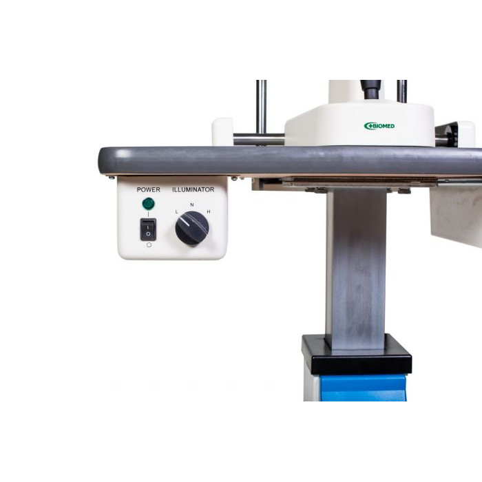 Освітлювальна система верхнього типу з галогенною лампою забезпечує спрямоване, яскраве та рівномірне підсвічування, що дозволяє гнучко формувати світлову пляму та детально досліджувати рельєф і структури переднього відрізка ока.
