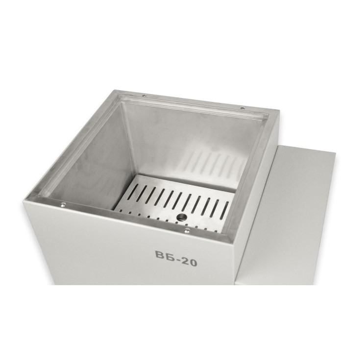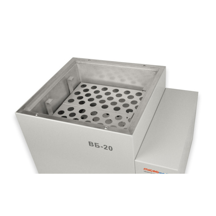 На цифровому індикаторі відображається реальна і встановлена температура, режим роботи нагрівальних елементів. Мікропроцесорний блок управління бані ВБ-20 має функцію таймера. Наявність таймера спрощує експлуатацію приладу та значно зменшує споживання електричної енергії. До комплекту постачання входить 2 штатива на 30 гнізд, діаметром 22,5 мм, виготовлених із нержавіючої сталі. У штатив можна встановлювати пробірки та бутирометри. Баня ВБ-20 має збільшену висоту робочої камери 230 мм. Експлуатація водяної бані ВБ-20 MICROmed з висотою камери 230 мм значно розширює можливості обладнання для термостатування різних ємностей.