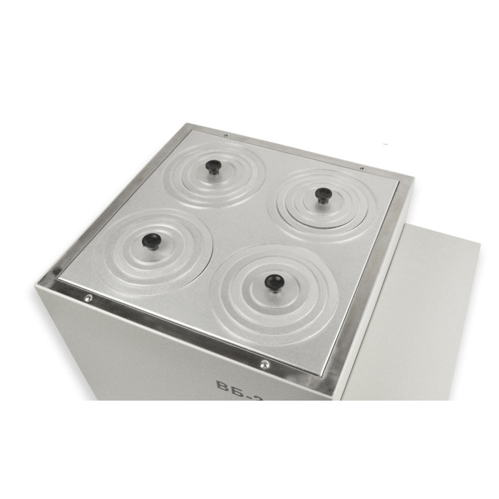 Баня водяная лабораторная ВБ-20 4-х місна призначена для використання в різних науково-дослідних, ветеринарних, діагностичних і промислових лабораторіях. Принцип дії водяної бані лабораторної ґрунтується на передаванні теплової енергії від нагрівальних елементів до води в робочій камері бані, і надалі до встановлених ємностей із рідиною, які термостатуються.