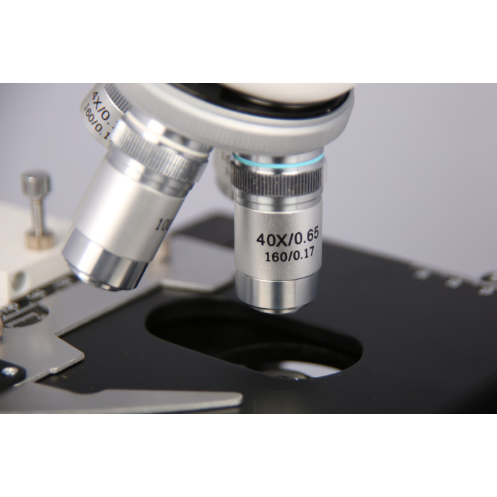 В основі вбудованої системи освітлення – світлодіодне джерело світла з показником потужності 3 Вт, температура свічення – 6300К. Холодне LED-світло, коригується оптичною системою колекторних лінз. Рівномірний по всьому полі пучок світла в подальшому коригується діафрагмою та лінзами конденсора. Висвітлений об’єкт дослідження, зручно продивлятися не створюючи навантаження на очі. Зображення відрізняється високою структурною деталізацією та чіткістю форм. Світлодіодна система, як джерело освітлення, найбільш популярна в порівнянні з галогеновими лампами.