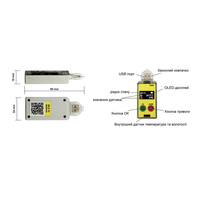 - Відображення режимів, тривог і поточних показників датчиків на висококонтрастному OLED дисплеї