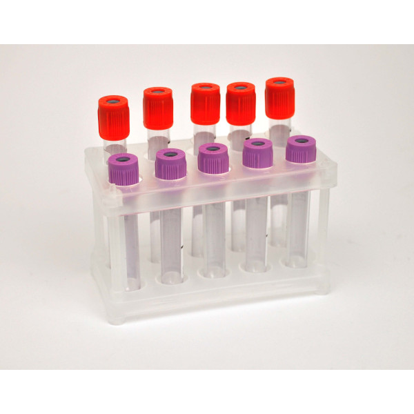 Штатив, виготовлений із поліпропілену, має напівпрозорий вигляд. Діапазон робочих температур виробів з поліпропілену від -15°С до +120°С. Автоклавується, має високу хімічну стійкість до кислот, лугів, альдегідів, аліфатичних спиртів. Розмір штативу 127х75х63 мм (ДхВхШ).