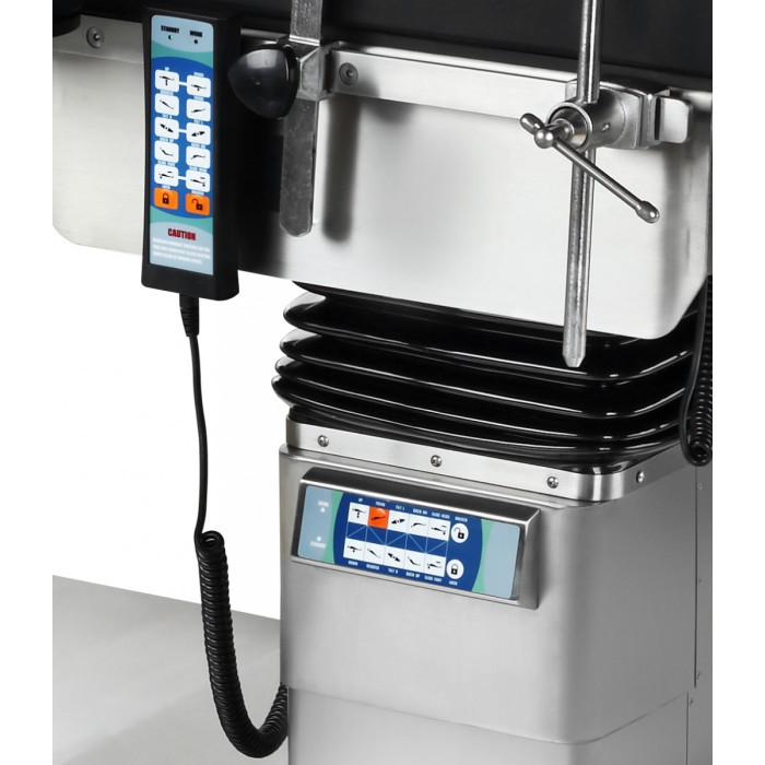Управління положеннями стола здійснюється за допомогою електричного приводу, що керується пультом управління або панеллю управління, розміщеною безпосередньо на станині стола. Станина і телескопічна тумба стола виготовлені з нержавіючої сталі. Верхня частина стола (ложе) рентген-прозора і складається з секції для голови, центральної секції (секції для сидіння), спинної секції та двох секцій для ніг. Опори для рук швидкоз’ємні та рентген-прозорі.