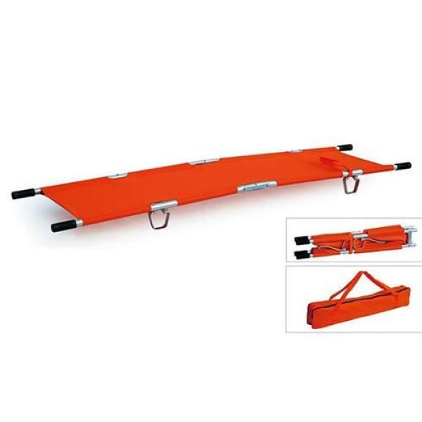 обладнаний чотирма опорами; полотно із спеціальної тканини, що легко дезінфікується. Це робить ноші легкими, компактними, зручними і