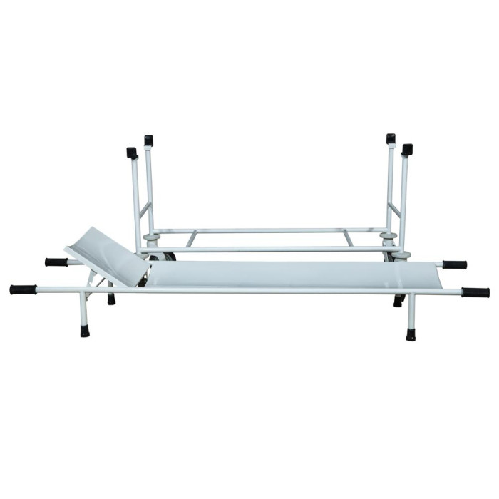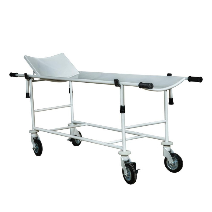 Візок ТБС-150 призначений для перевезення пацієнтів між приміщеннями в медичних установах. Конструкція візка складається з двох частин – нижньої, каркас на колесах та знімних нош на гумових ніжках. Наявність знімних нош дозволяє переміщати пацієнта по сходах та іншим нерівним ділянкам. На ношах також встановлений регульований підголівник для надання голові комфортного положення. Каркас виробу встановлений на посилені колеса, що дозволяє витримувати динамічне навантаження до 120 кг. Додатково візок може бути укомплектований матрацом, який можна мити, ременями для тулуба і ніг, кріпленням для апаратів інтенсивної терапії. Вага візка, не більше 35 кг.