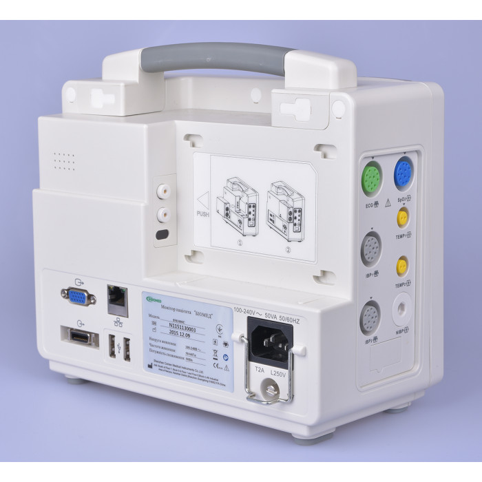 - Модульність: Монітор складається з різних модулів, таких як модуль ECG, SpO2, температури, артеріального тиску та інших, які можуть бути легко змінені залежно від потреб медичного персоналу.