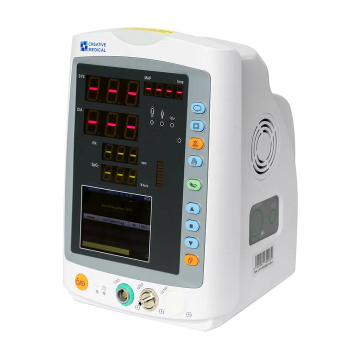 Монітор пацієнта PC-900PRO від CREATIVE MEDICAL дозволяє контролювати такі параметри як: SpO2 (насиченість крові киснем), PR (частота серцевих скорочень), NIBP (неінвазивний артеріальний тиск), TEMP (температура).