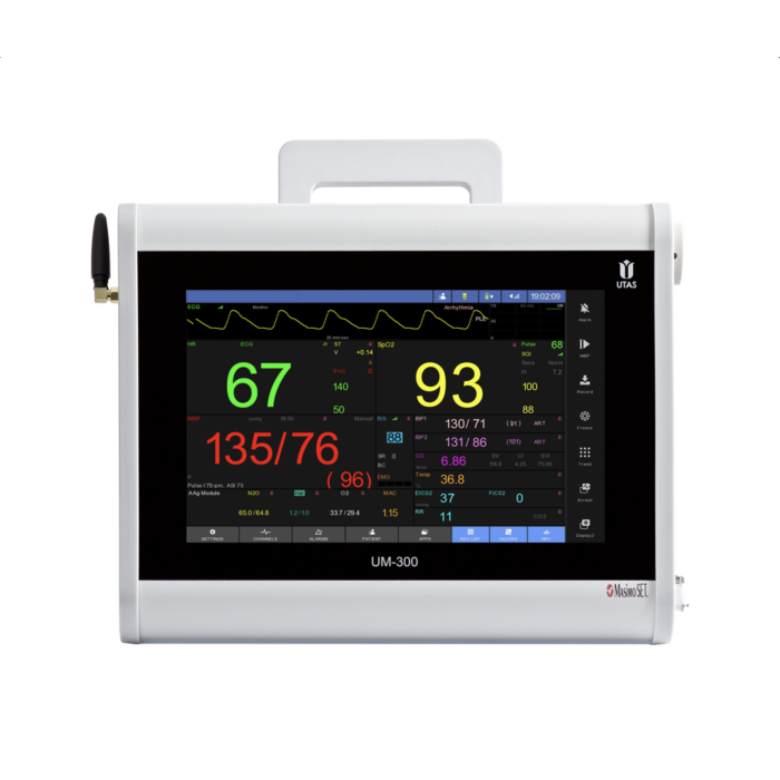 Монітор реанімаційно-хірургічний ЮМ 300-10 призначений для безперервного спостереження життєво важливих функцій пацієнта, відображення їх на дисплеї, зберігання накопичених даних в незалежній пам'яті приладу, обробки показників моніторування з отриманням діагностичних даних, виведення необхідних даних на друк, сигналізації про відхилення контрольованих параметрів.