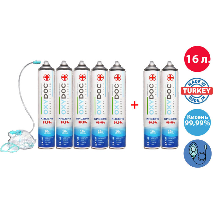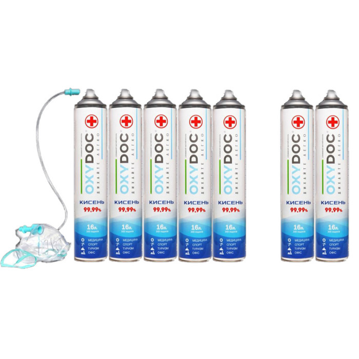 Набор кислородных баллончиков OxyDoc (Турция) с маской 16 л (5+2 шт)