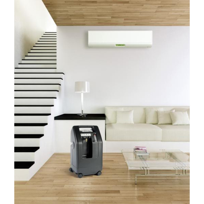 Концентратор оснащен индикатором уровня кислорода и функцией автоматического отключения при перегреве или низком давлении кислорода. Кроме того, устройство имеет регулятор потока кислорода для настройки его интенсивности в соответствии с потребностями пациента.