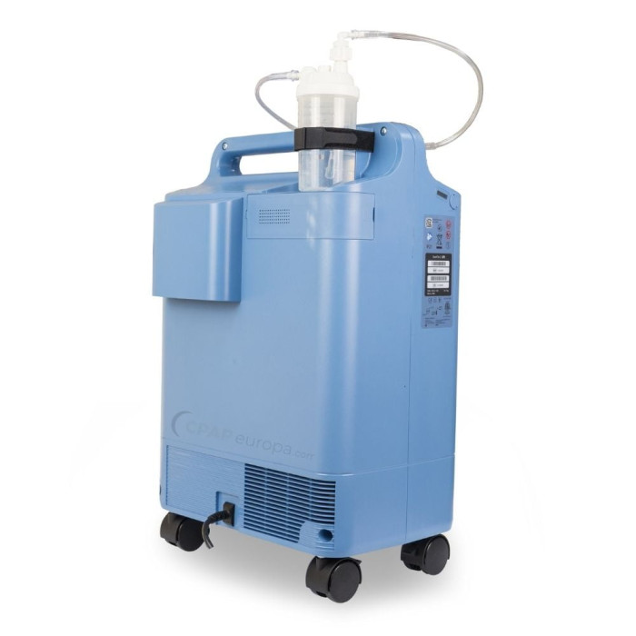Устройство совместимо со стандартными увлажнителями кислорода (бутылками), которые подключаются к выходному порту. Наличие увлажнителя предотвращает пересушивание слизистых оболочек при длительной ингаляции кислорода и делает терапию более комфортной, особенно для чувствительных пациентов.