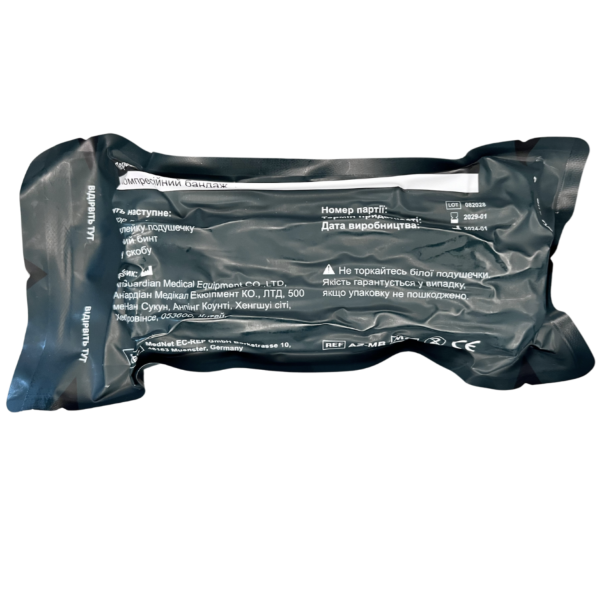 Бандаж перев'язувальний 6″ є одним з невід'ємних трьох компонентів зупинки кровотечі при поранені кінцівки: турнікет- гемостатичний бинт-перев'язувальний бандаж.