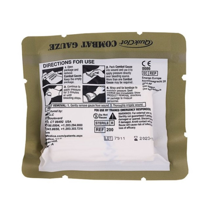 - ефективна Z-образна форма, не вимагає розмотування, що дозволяє запихати Quikclot Combat Gauze в рану дуже оперативно прямо з упаковки;