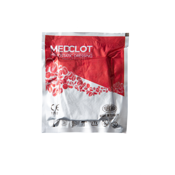 Гемостатичний бинт Медклот — гофрований бинт із гемостатичним просоченням, розроблений спеціально для зупинки сильних кровотеч та для щільної тампонади рани.