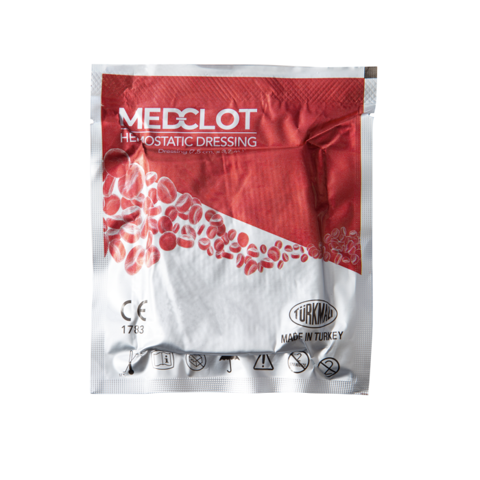 Метод гемостазу Med-Clot використовує каоліну, карбоксиметилцелюлозу та активний інгредієнт, який поміщається в спеціальний нетканий матеріал, щоб зупинити кровотечу вже за п’ять хвилин.
